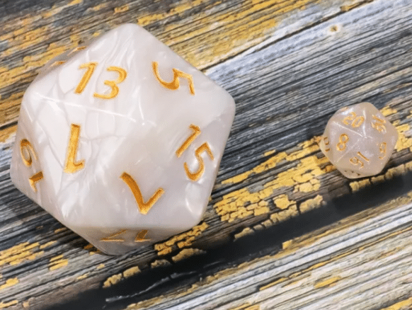 This pearly white giant D20 with its golden numbers may not smell as sweet as a Daffodil, but at least it won’t trigger your allergies!